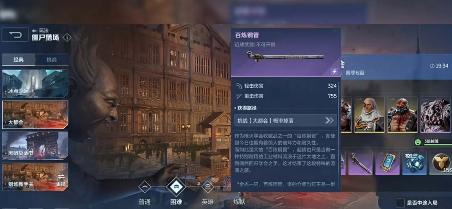 百炼钢管与棒球棍同属T2实用级近战装备,基础攻击距离均为1.8米,适合新手过渡及早期关卡应对低威胁小怪。二者攻击间隔较长(约0.9秒),缺乏特效机制,但胜在获取门槛低、操作容错率高。初始匕首则作为默认载具,攻击距离仅1.2米,仅建议用于紧急自保或技能真空期补刀。