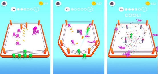 简约的画面以及卡通的风格,是所有人群都可以得心应手操作的一款手游,在同一个场景当中,您需要操控自己的英雄瞄准的方式和对手展开疯狂的较量,只要利用自己的实力将对方打倒在地,就能够成为最终的胜利者,但是在此过程当中也会遇到很多的障碍物,从而跨越障碍物才能完成挑战。