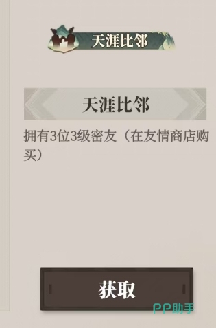 当然除了玄枭初鸣之外,游戏里还隐匿着大量其他饶有趣味的称号,比如说天涯比邻这个称号,需要玩家拥有3位达到3级亲密度的好友才行,为了获得这个称号,玩家可以充分利用友情商店这个资源,在里面购买能够增进亲密度的道具,除此之外还可以通过彼此之间互相帮助、赠送礼物等多种方式来逐步提升与好友之间的亲密度,直至达成获取该称号的条件。