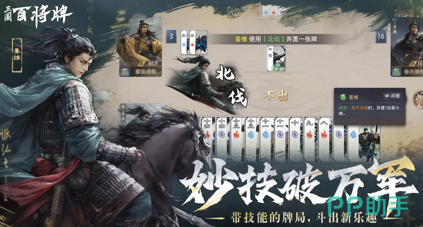 游戏中最具特色的设定是名将专属技能系统,该技能能够直接干预玩家手中的牌面组合,实现逆转局势的操作。此外,玩家还可为武将配备战马,进一步强化技能效果,提升战场掌控力。