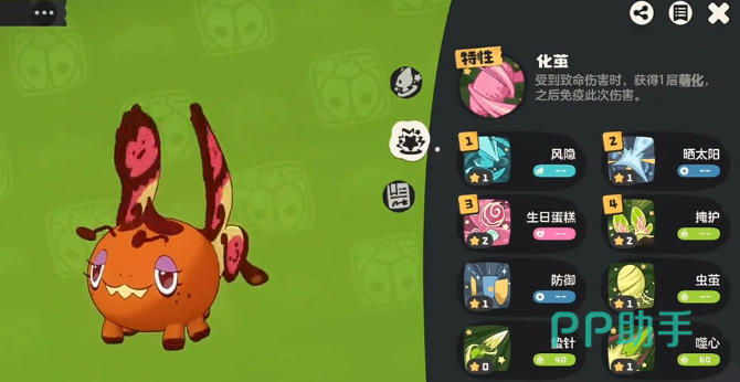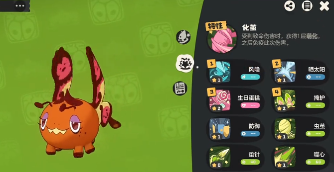 化蝶:专精于高阶拦截与生存博弈的策略型精灵。依赖“化简”特性,在承受致命伤害时自动退化至上一进化形态,最多可完成三次阶段转换,实质等同于三次独立作战机会。配合退化技能、太阳之力(提升闪避与暴击)及封印类技能,可形成持续压制链,有效限制对方核心输出单位的行动节奏与技能释放窗口。