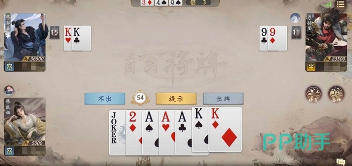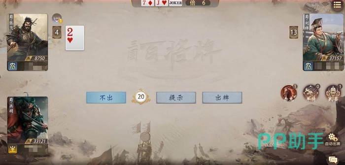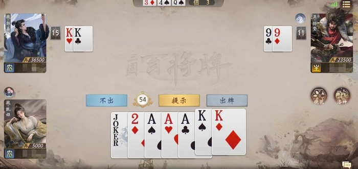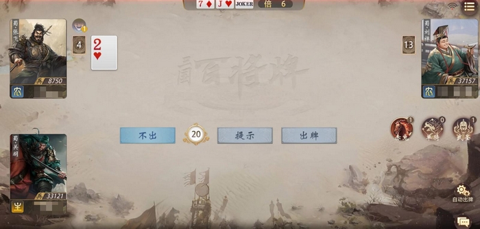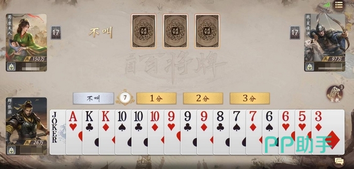 游戏核心玩法围绕“三人斗地主”展开,每位武将拥有专属技能,如张飞可强制对手弃牌、诸葛亮可重排手牌顺序、赵云可跳过出牌阶段等。这些技能并非改变胜负逻辑,而是服务于策略延展——例如配合队友形成连环压制、预判对手手牌结构进行诱导、或在劣势局面中完成关键翻盘。规则易懂,上手门槛低,但深度足够支撑长期竞技体验。