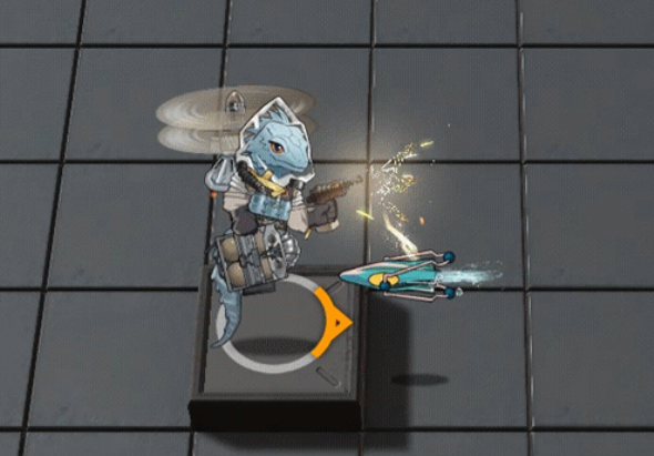 二技能“电磁脉冲恩宠”为持续型过载技能,开启后攻击范围扩大至3格,每次攻击附加额外物理伤害,并进入弹药积攒状态;技能期间可随时手动关闭,释放所有已储存弹药,随机攻击场上至多3名敌人,每发弹药独立判定伤害。该机制赋予其极强的应变能力,适用于突发高威胁目标处理或残局收尾。