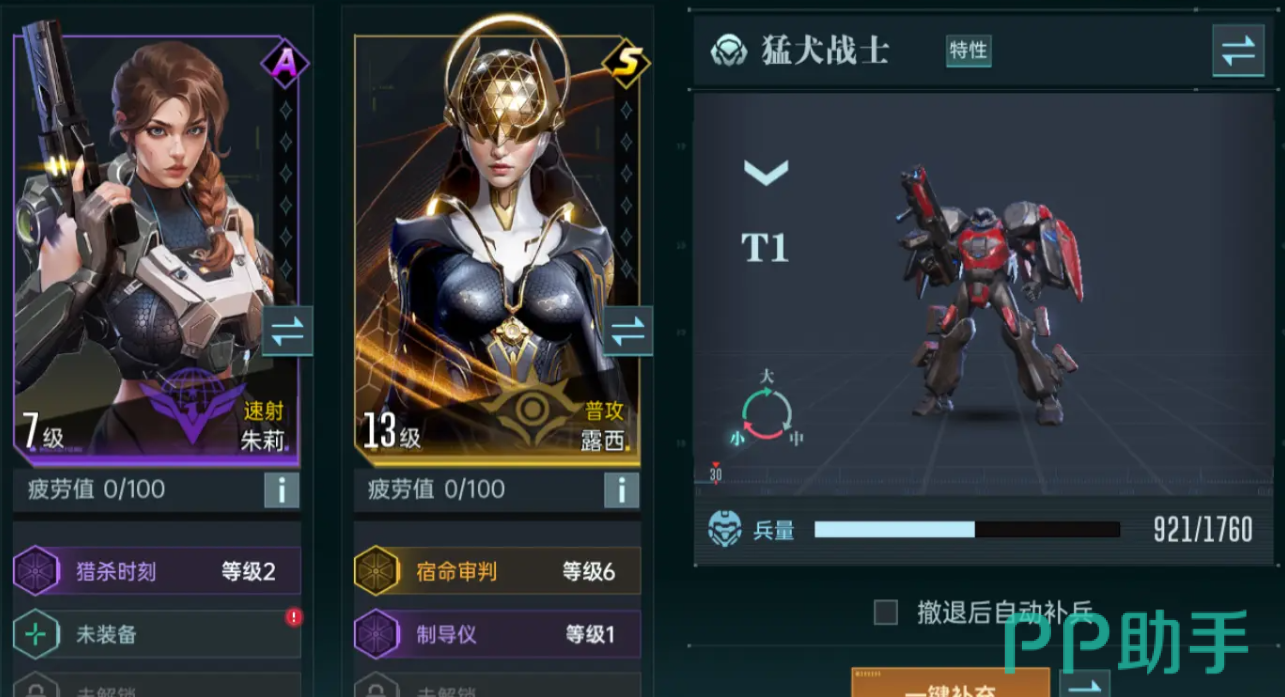 第二个角色搭配露西,具备有宿命审判能力,露西的基础攻击倍率非常高,搭乘朱莉为露西提供的攻击效果加成,可以在倾刻之间秒杀敌人,并且附带有制导仪能力,在击杀敌人后,还能够为自己提升护盾数值,攻速流派兵种选用直接使用猛犬战士即可。