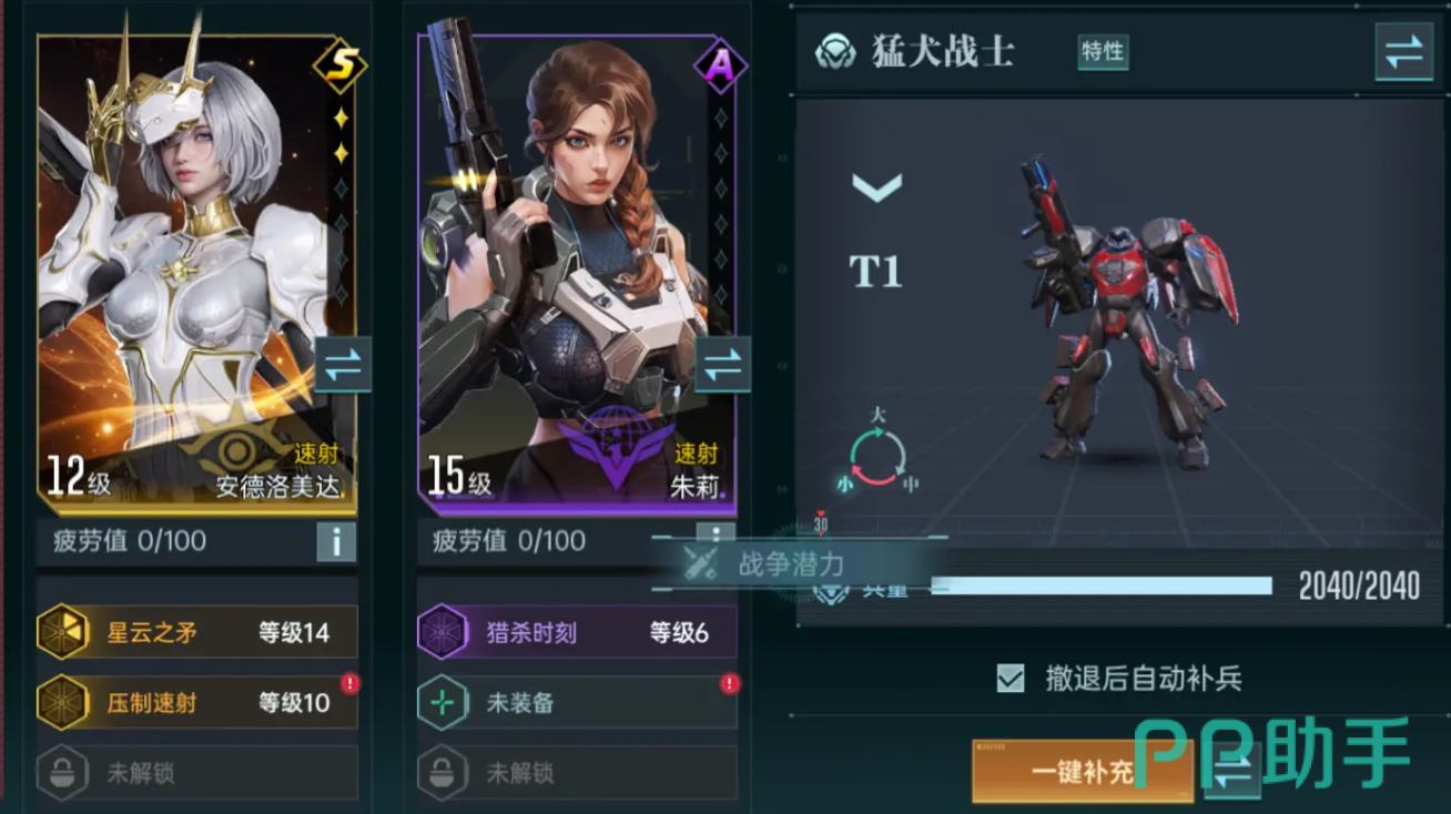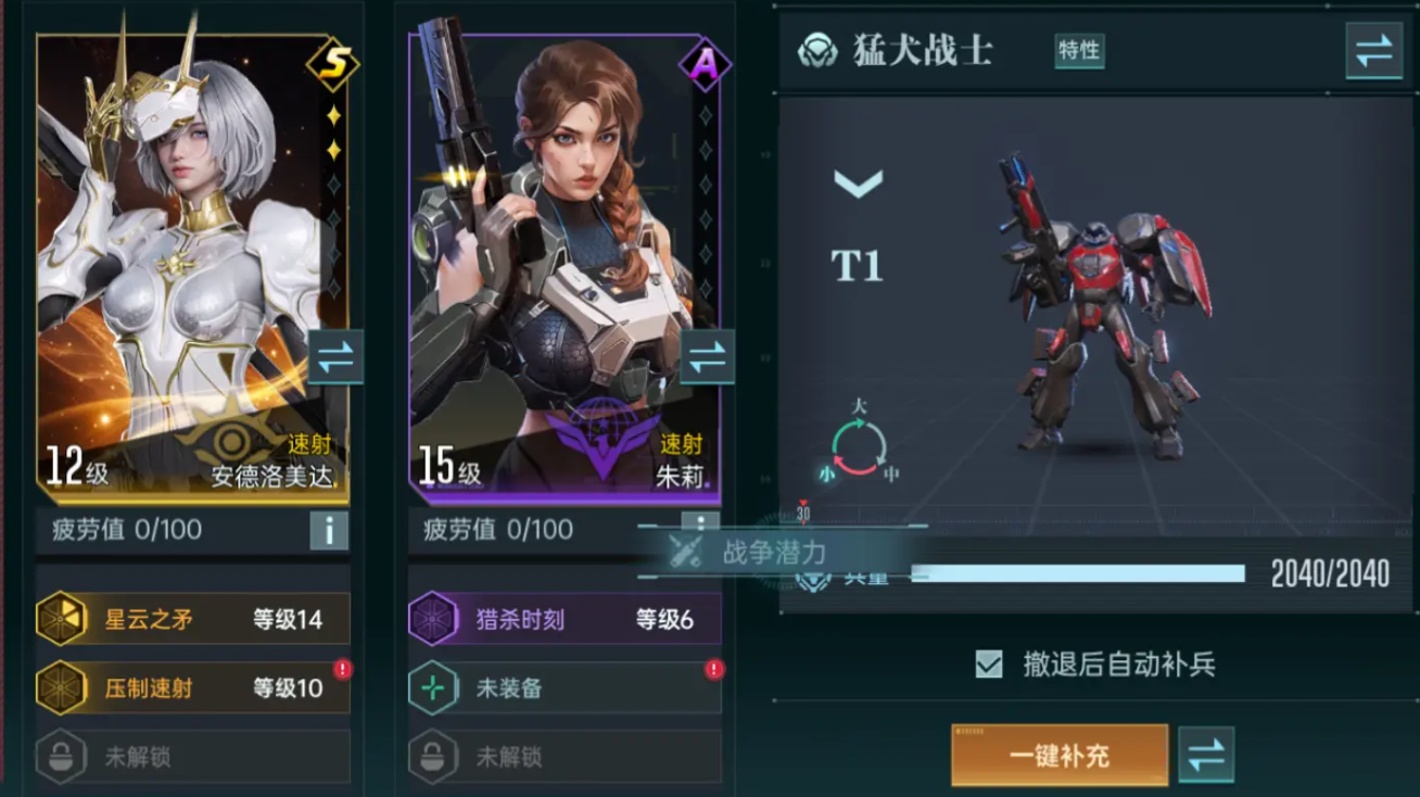 第二个值得推荐的新手队列,是速射流派,需要玩家搭乘安德洛美达以及朱莉这两个角色。