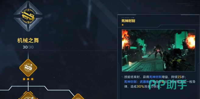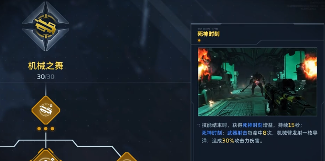 为最大化“机械之舞”的持续压制力,推荐组合“死神时刻”与“绚烂烟火”两个辅助天赋。“死神时刻”可在狂暴状态下进一步提升整体伤害倍率,强化旋转射击期间的输出强度;“绚烂烟火”则扩展了每次旋转打击的溅射半径,并增强末段爆发的AOE覆盖面积。二者叠加后,既保障了单体穿透深度,又兼顾群体清剿广度,使整套配置在应对常规僵尸波次与高血量BOSS战时均保持高度稳定性。在快节奏对抗环境中,高频、可控、可持续的伤害输出,明显优于依赖时机与场地的短时控制类方案。