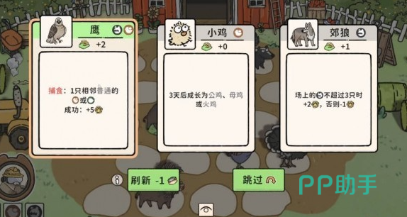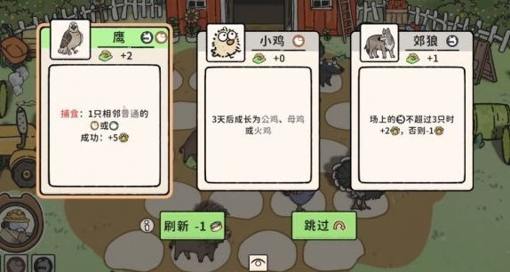 动物系统为玩法中枢:160只生物划分为七大种族,各具独特被动特性。流派构建围绕种族联动展开,例如“养猪过渡流”以野猪触发感染效果,辅以母鸡提升金币产出,配合草地地形实现稳健发育;而偏好高速成长的玩家可尝试“灰狼捕食流”,借灰狼猎杀山羊快速升级,中期由老虎承接爆发输出。不同流派对地形有明确适配要求——鸟类需巢穴、爬行类依赖沙地,合理匹配地形可显著放大收益倍率。