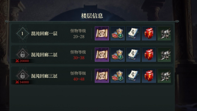 混沌回廊采用类“爬塔”机制,共设多层关卡,每层均设有明确的等级准入门槛。例如:第一层需角色达到20级方可进入;第二层起始门槛为30级;第三层则要求角色不低于40级。唯有战力匹配对应层级,才能保障战斗效率与通关稳定性。每位玩家每日拥有两次免费挑战机会,重置时间为每日下午5点整,即从当日17:00至次日17:00为一个完整周期。若次数耗尽,可消耗通行牌或元宝进行额外兑换,每次兑换可增加一次入场资格,因此单日最高挑战上限为四次。