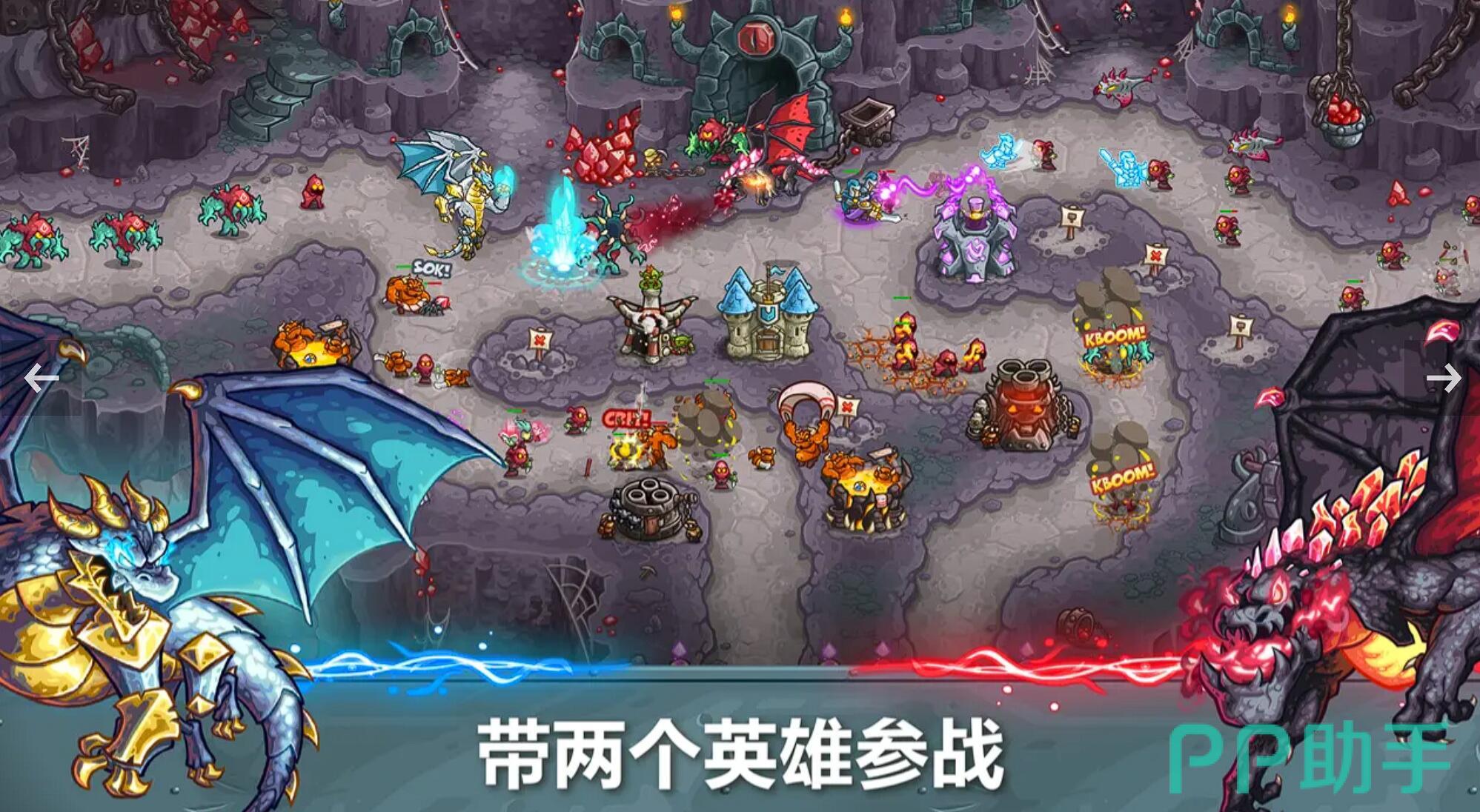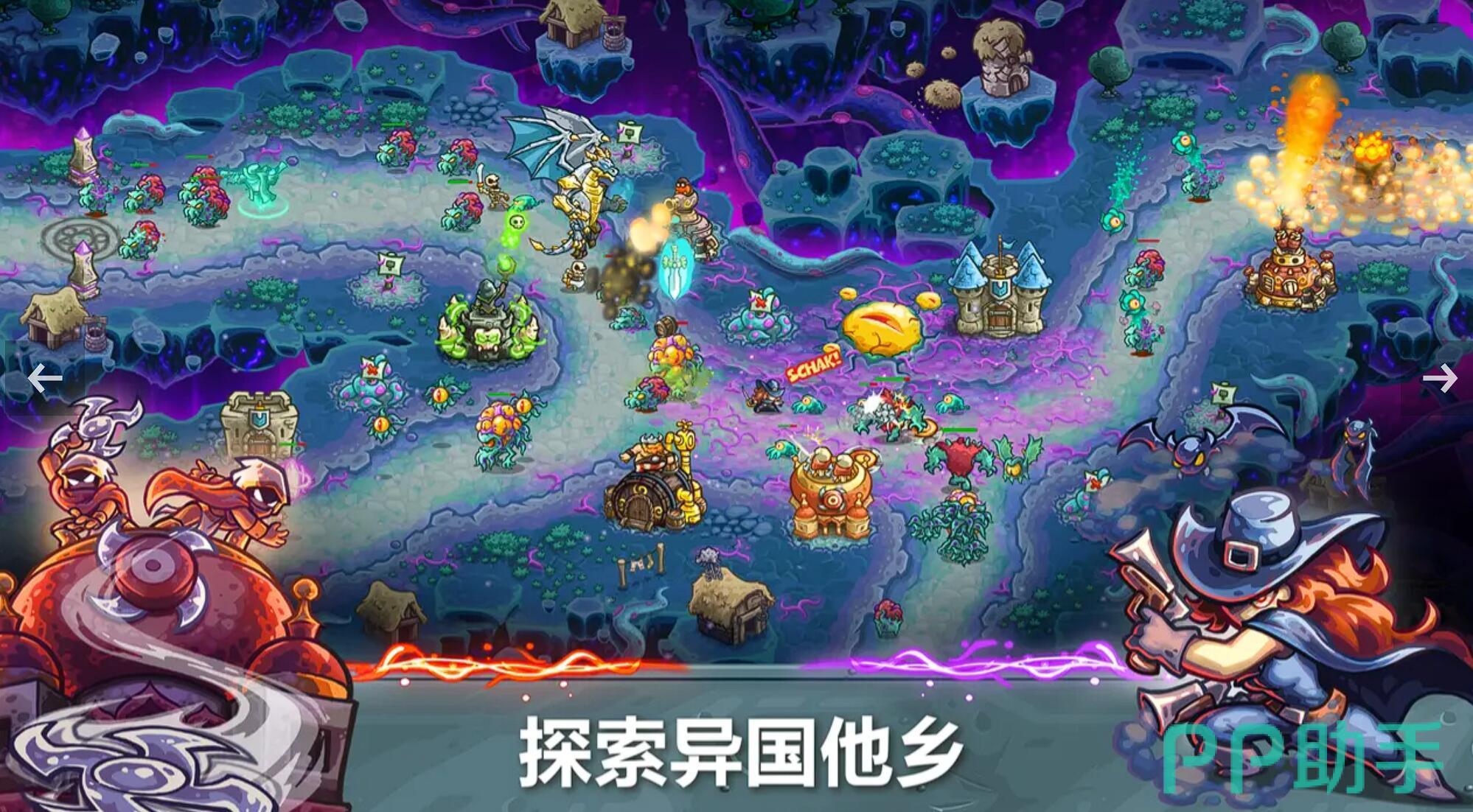 美术风格延续系列标志性的卡通奇幻画风,角色与场景细节全面升级:防御塔攻击特效加入动态光影,英雄释放技能时会触发全屏特写动画(如“光明使者”的“圣裁之剑”可撕裂云层)。音乐由系列原班团队创作,每个区域配备专属主题曲,战斗时背景音乐会随敌人波次强度动态变奏,增强沉浸感。