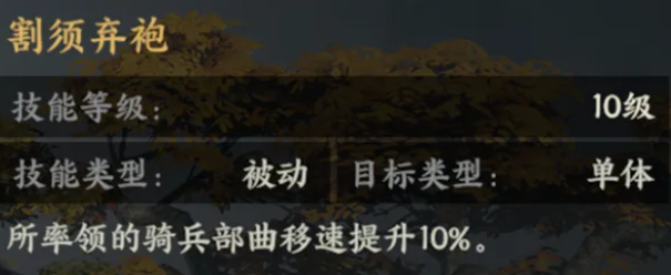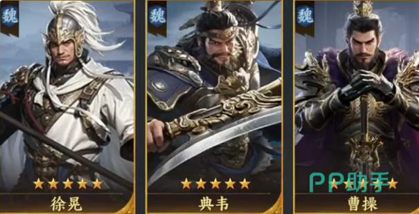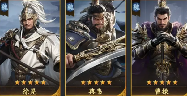 本阵容推荐由曹操、典韦、徐晃三人构成骑兵突击单元。“游击骑”的构建基础在于全队移速的绝对压制——三者技能机制形成闭环协同:曹操被动技“割须”可直接提升全体骑兵单位移速;其主动技“魏武”赋予部队免疫所有减速效果的能力,确保机动链不被敌方控速手段打断;徐晃则通过“横刀”在战斗结束后进一步提升己方骑兵移速,并以“渡而击之”施加附带减速效果的“泥潭”状态,为速度差转化提供前提条件。