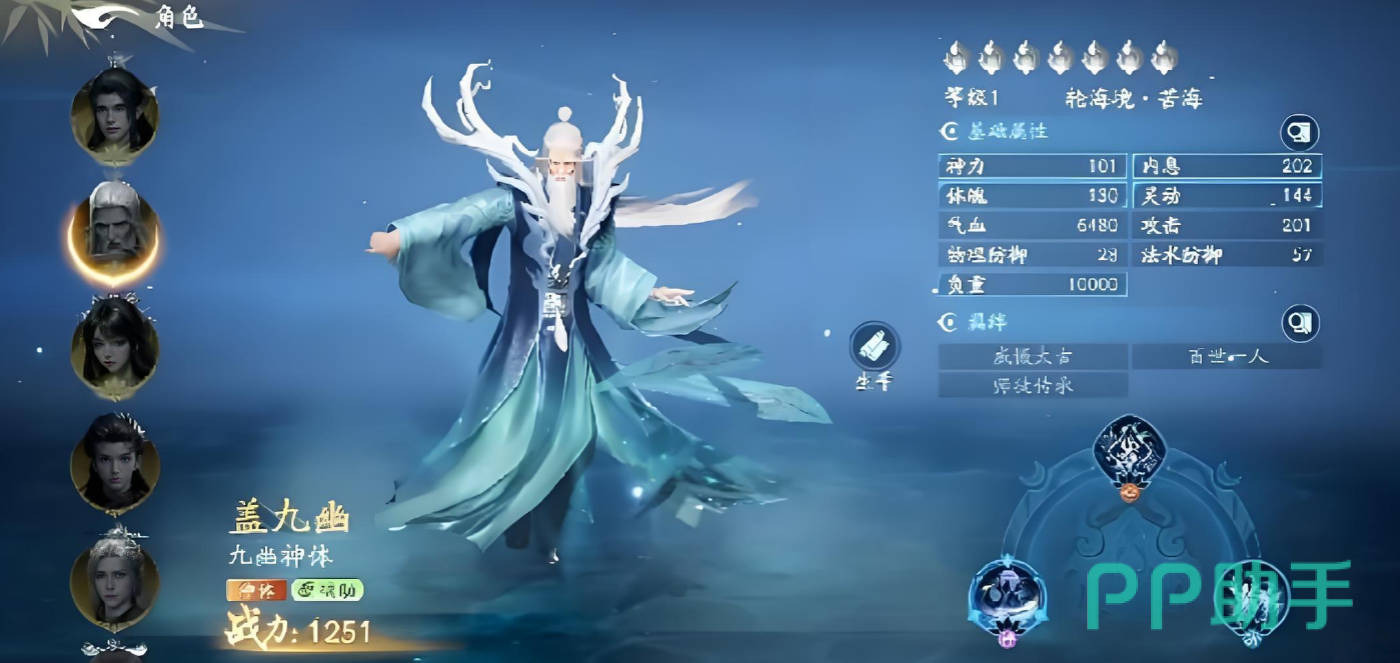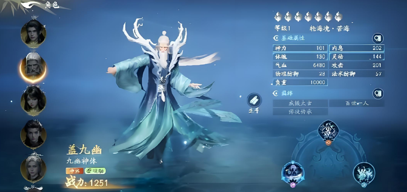 值得注意的是,盖九幽在游戏中担任夏九幽的授业恩师。夏九幽作为主力输出型角色,定位为物理爆发C位,基础技能组包含高倍率单体突刺、范围震荡波及持续流血效果,同时内置生命回复与减疗压制机制。当盖九幽与夏九幽共同编队出战时,将激活【师徒传承】专属羁绊,直接提升夏九幽最大气血值,强化其战场续航与容错能力。