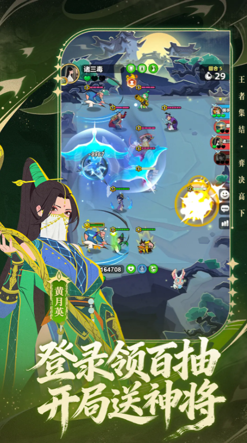 本作以真实历史人物为原型构建角色体系,涵盖从先秦至明清的代表性英雄。每位神将均配备差异化机制技能:如黄月英提供团队增益与资源转化,孟获则具备突进控制与范围眩晕效果。数百位神将间存在多重羁绊关系,配合每局触发的随机事件系统(含轻度Roguelike要素),显著提升单局策略纵深与重玩价值。