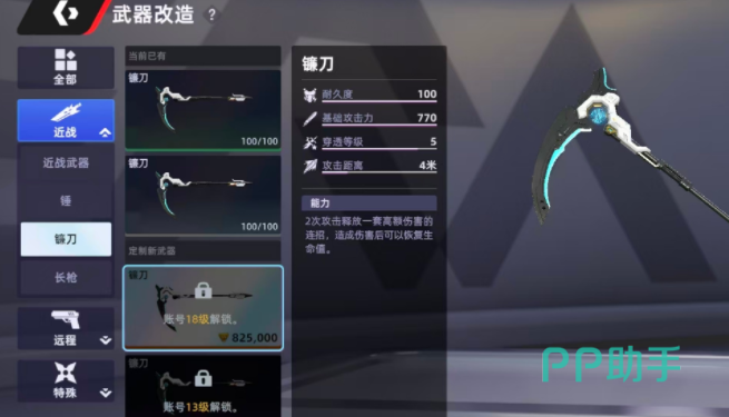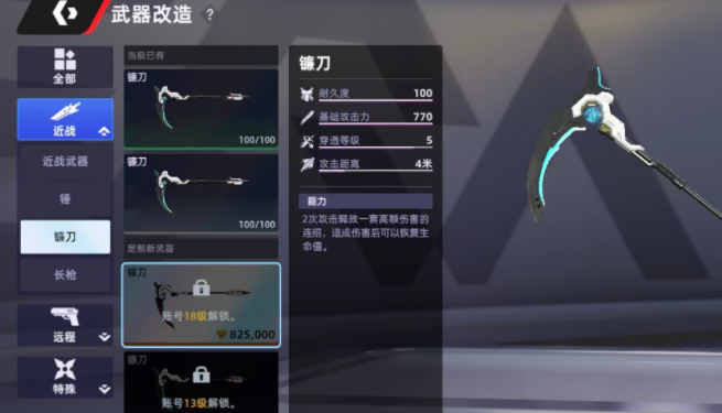 尽管枪械系统丰富多样,但在狭窄空间或遭遇突袭时,冷兵器往往具备不可替代的战略价值。镰刀作为近战武器体系中的高辨识度代表,基础攻击距离有限,但单次命中伤害量级等同于主流长管枪械。其核心机制在于“吸血反馈”:每次成功命中敌方单位,均可按固定比例恢复使用者生命值。该特性使其成为前期资源紧张阶段的理想首选。实测数据显示,镰刀基础耐久度为120点,基础攻击力为38点,连续两次挥砍可触发强化连击效果,造成总计115点范围伤害并同步恢复22点生命值。