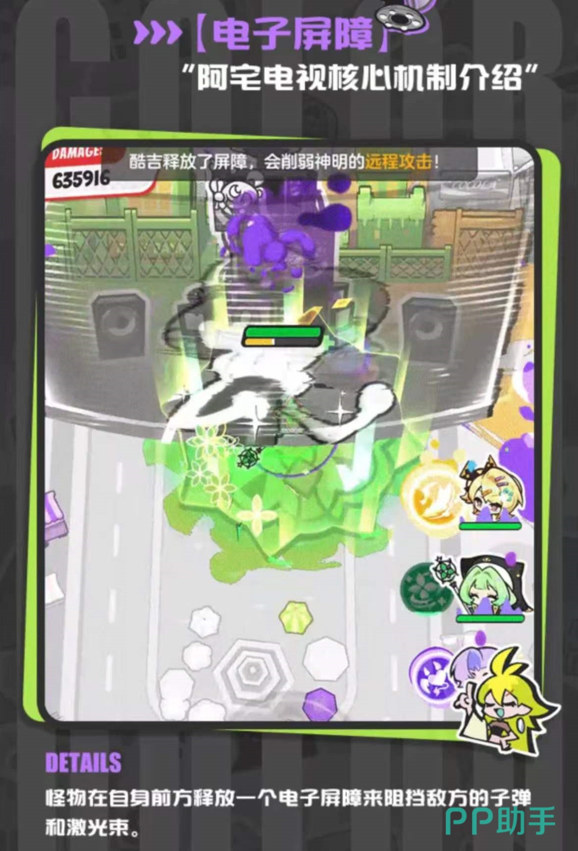 阿宅电视作为“每日通缉”副本压轴敌人,拥有标志性的电子屏障机制:其会在正前方持续生成一道可格挡远程弹道与激光类技能的防护层。这意味着依赖直线射击或单体激光输出的神明伙伴将难以直接命中本体。因此,破局关键在于规避屏障干扰——优先选用具备近战突进、范围覆盖或穿透型AOE能力的角色构成队伍体系。