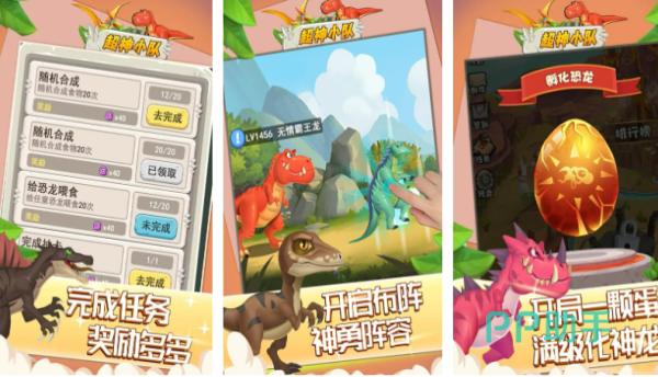 在这款游戏中玩家将会组成一个狩猎恐龙的小队,并且该游戏目前已经收录了各个时期的恐龙种类,例如玩家能够在游戏中看到,强大的霸王龙和能够飞翔的翼龙。当然该游戏还拥有着捕获恐龙的内容,玩家在游戏的初期便可以捕获到许多强大的恐龙。而在捕获到恐龙之后,玩家便可以将其组成阵容来搭配出一个强大的恐龙战队哦!