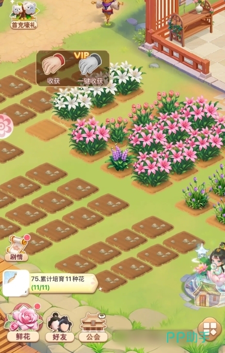游玩时,各位需要在游戏里完成对鲜花种子的获取才能进行种植,获取的方式有很多种,光是推进主线就能让玩家们逐步获取多个不同品种的鲜花,并且游戏所开放的活动也包含有鲜花,参与只要达成相应的目标便能领取。除此之外,购买礼包等氪金方式也能让玩家们拿到很多好看的鲜花。拿到了鲜花种子后,玩家便能它们种植在土地上,但要注意只有已经解锁了的土地来进行种植,未解锁的土地玩家们也无需担心,它们会随着游戏进度逐步开放,最终都能被玩家们使用。