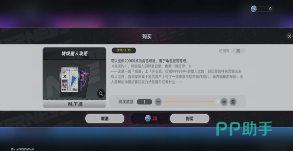 兑换策略应严格遵循战力成长阶段需求。首推【特级猎人攻略】——该道具一次性提供20000点角色经验,在开荒期具有不可替代的战略价值。等级是解锁技能树、新副本、协同机制的基础前提,经验缺口越大,后续内容推进阻力越强。由于该道具库存限量,一旦刷新务必第一时间兑换,抢占升级先机。