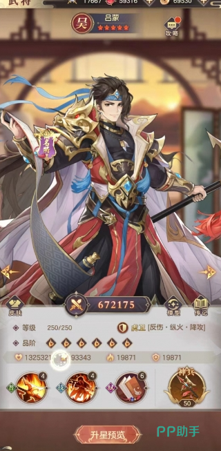 灵兽:推荐是玄武,技能带高级免伤,中级免伤,高级法抗,中级法抗,高级物抗,中级物抗,高级受疗,中级受疗,其中受疗是吕蒙优先级最高的灵兽技能,先开出受疗一高一中,再补高级的免伤,物抗,法抗,再然后补出这些技能的中级。