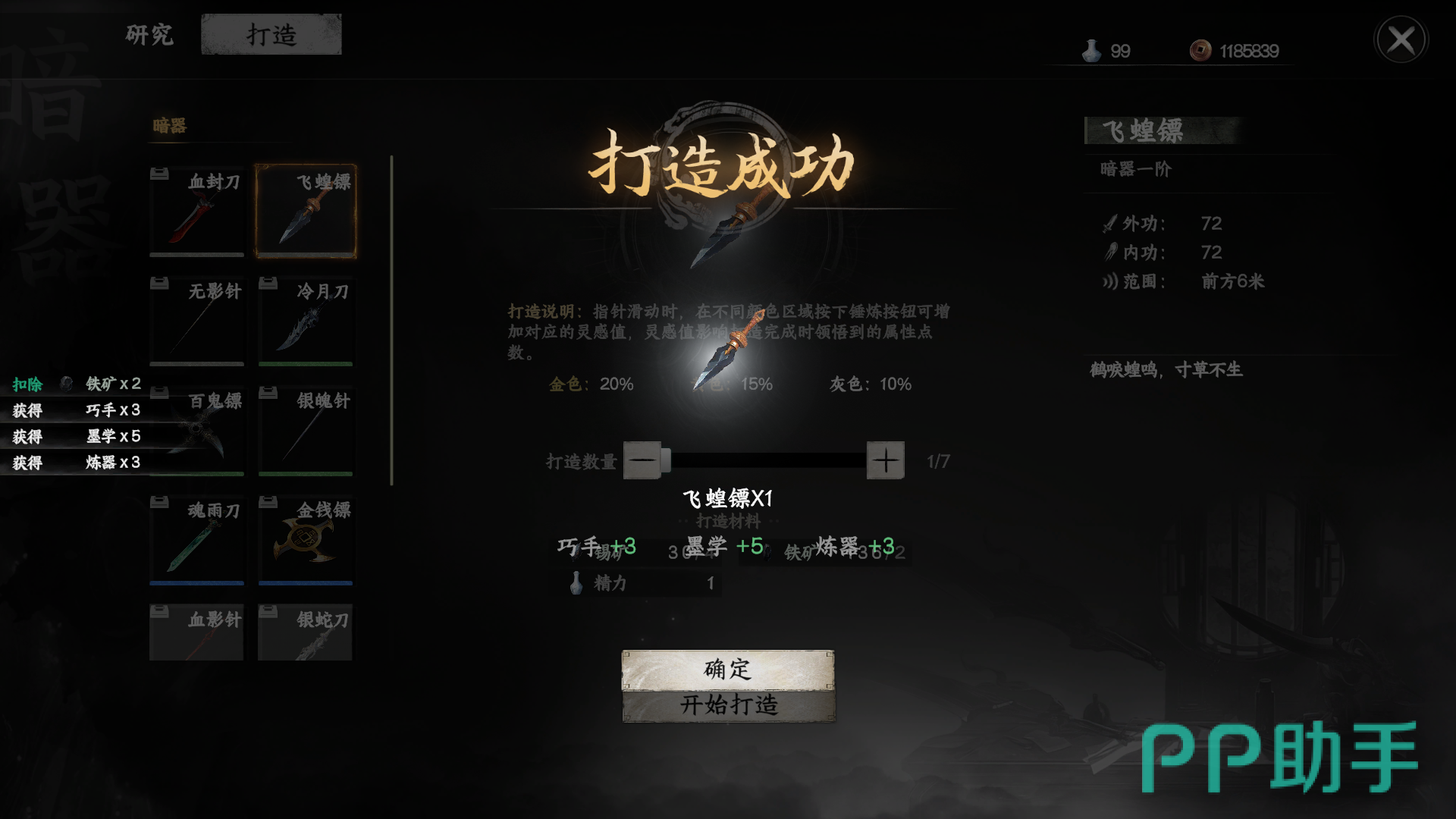 那么,如何才能具备研发五阶暗器的技术水平?核心在于三项关键属性的积累——墨学需达到650点,巧手和炼器分别需达到520点。最高效的提升方式是持续进行暗器打造操作,在反复实践中逐步提高上述三项技能等级。通过不断积累经验,最终满足高阶暗器研发门槛,从而触发掌门继承任务线。