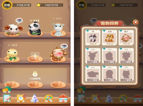 如果你想养宠物,这款游戏相对于只能领养一只或者是比较单一类型的,属于比较丰富的。不仅有常见的小猫小狗,同时还有森林霸王老虎或者是猴子,以及国宝熊猫等。通过对每个宠物进行解锁的方式,就能成为自己的宠物。只需要获得相关的等级以后,就可获得等级比较高的宠物。其中就包括对宠物的饲养,也能满足宠物的需求。