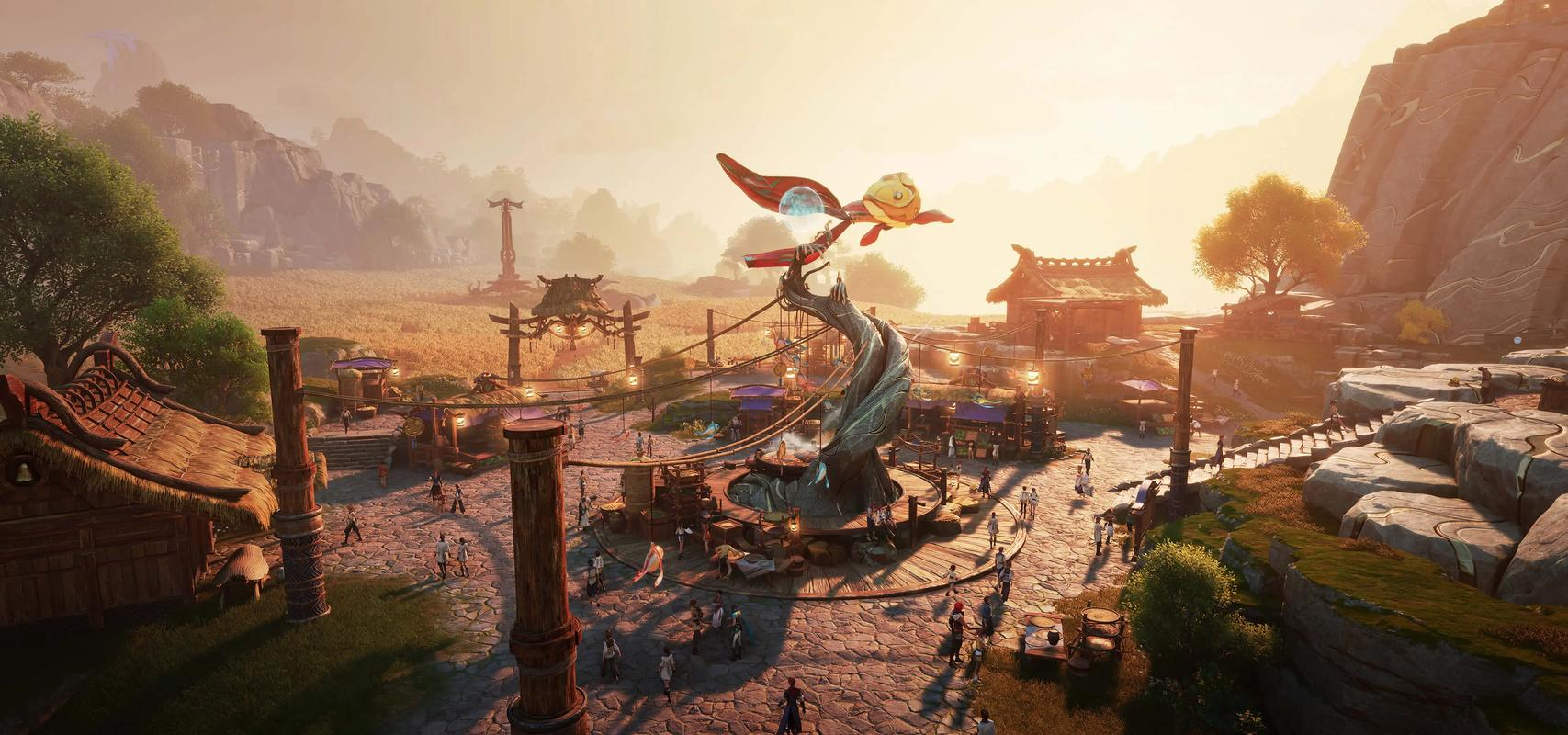 虚幻5引擎凭借Nanite虚拟化微多边形几何系统与Lumen全动态全局光照技术,在画质表现层面实现了质的飞跃。在《王者荣耀:世界》中,这一优势得到充分释放:大地图场景具备电影级细节密度,远至层叠云雾笼罩的峰峦,近至草叶脉络与石面风化纹路,均实现毫秒级实时渲染;光影随时间、天气及视角动态演算,建筑立面在正午强光下呈现精准高光过渡,阴面则保留丰富环境遮蔽细节,整体视觉沉浸感显著增强。