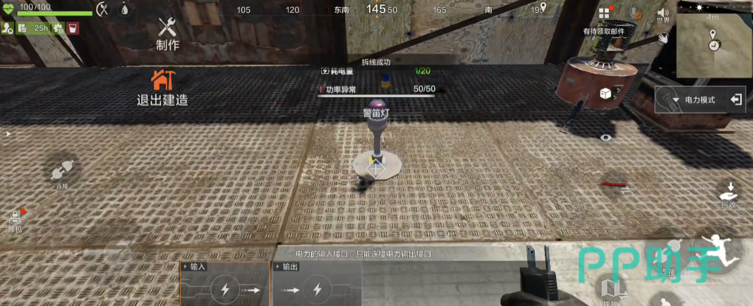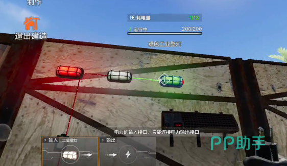 玩家可以从任意一种发电设备开始安装,成功部署后会出现电力接线提示。点击对应按钮即可进入布线模式。界面下方会实时显示连接状态,便于判断线路是否通畅。将用电设备的输入端口与电源相连,建议优先点亮工业壁灯——该设备不仅可接收电力,还能作为中继节点传递电能,实现多设备串联布局。