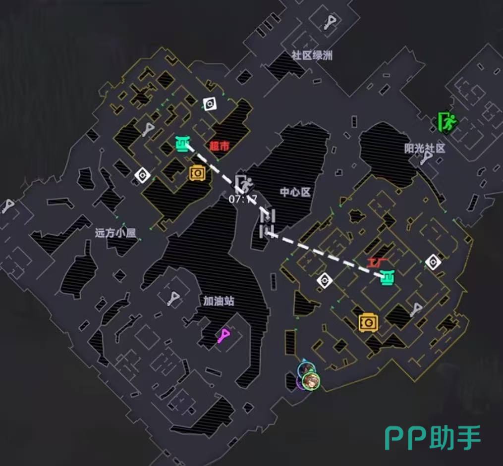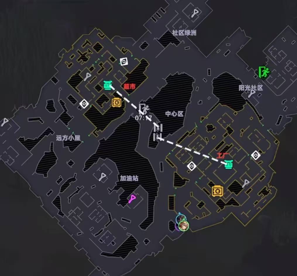 谷仓区是新手入门首选地图,仅含普通禁区,节奏平缓、容错率高。全图共设5处密室,需提前携带对应钥匙方可开启,具体位置参考上方示意图。每局时长固定为12分钟,时间管理尤为关键,建议优先规划动线,兼顾资源拾取与安全撤离路径。