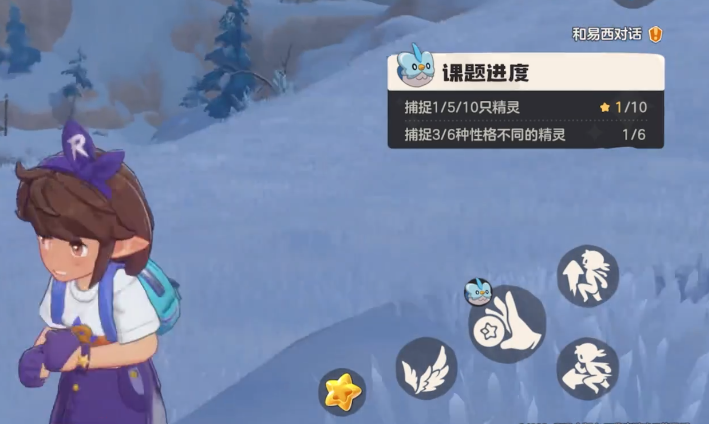 做任务的最终目的,其实就是让玩家获得冬羽雀,这样就能拥有飞行的能力,另外在游戏里还会有课题进度,在获得冬羽雀之后,玩家还需要去捕捉精灵,会设置5只和10只的任务阶段,完成之后就能获得奖励,同时还会有一个任务需要玩家捕捉三种到六种性格不同的精灵,这样在此后探索或者是战斗的过程中,才有更多的精灵角色可供玩家使用。