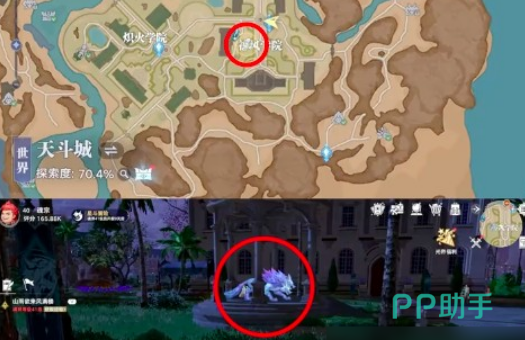 第四个回忆点相对来说稍微复杂一点,它位于联合学院的右侧。玩家需要沿着大路走,前往河道区域,最后抵达天斗城居民区的西北方。地图上会显示出一个明显的卷轴标记,走到这个位置后,记忆会自动解锁。