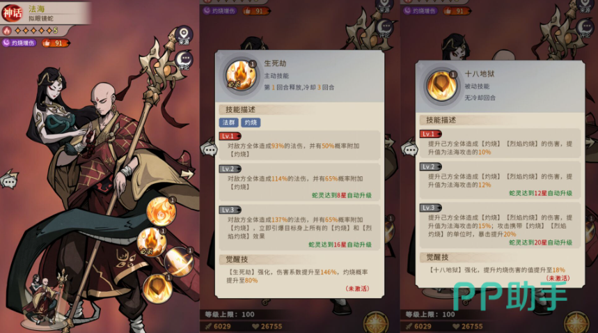 法海作为功能性副C,核心价值在于重伤叠加与灼烧引爆联动。其技能可对目标施加可叠加的重伤状态,当灼烧层数达到阈值后触发连锁引爆,造成高额附加伤害;同时还能提升队友暴击伤害,强化整体爆发上限。这一机制使其成为衔接输出循环、补足伤害缺口的关键支点。