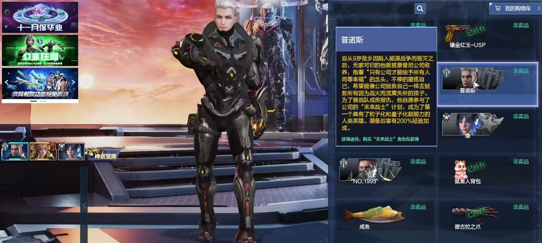 当前版本中,“未来战士”角色包共包含三位可操作特战员:曦(突击先锋)、凛(战术仿生体)、普诺斯(量子特战员)。三人定位互补——曦具备短距瞬移与范围压制能力;凛为全机械构造,支持无冷却模块变形及纳米级自主修复;普诺斯则融合生物神经接口与量子计算模块,在PVP对抗与PVE协作场景中均展现出高适应性。
