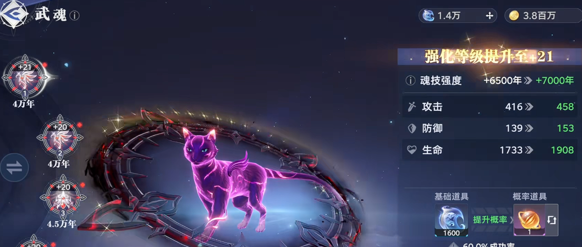 其次为武魂系统——作为角色核心成长载体,其不仅提供高额基础属性加成,更赋予专属被动效果与额外主动技能。武魂进阶需消耗特定材料(如“玄铁精魄”“万年魂骨残片”等),每次升阶存在失败概率,建议优先通过商城购置保底类道具以确保稳定成长。成功进阶后,角色在生命、攻击、防御、暴击等维度均获得跨阶提升,是支撑魂王战力持续跃升的底层支柱。