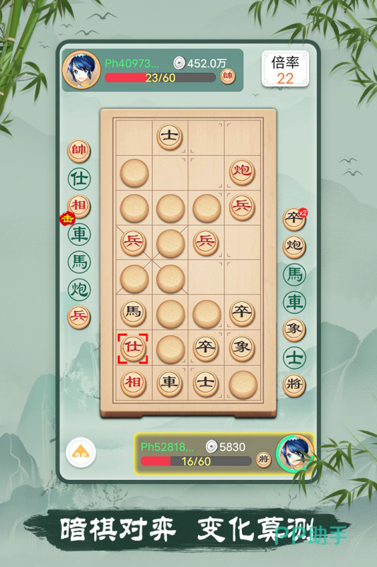 这款游戏是一个非常具有设计感的游戏,大家可以和不同的对手开启下棋的挑战,游戏中可以自行去选择级别,比如说初级,中级和特级。整个游戏的画面是比较简约的,而且还会有提示或者是悔棋等按键,大家可以根据自己的需要去点击。整个游戏是比较慢节奏的,大家可以非常休闲的去进行整个过程。