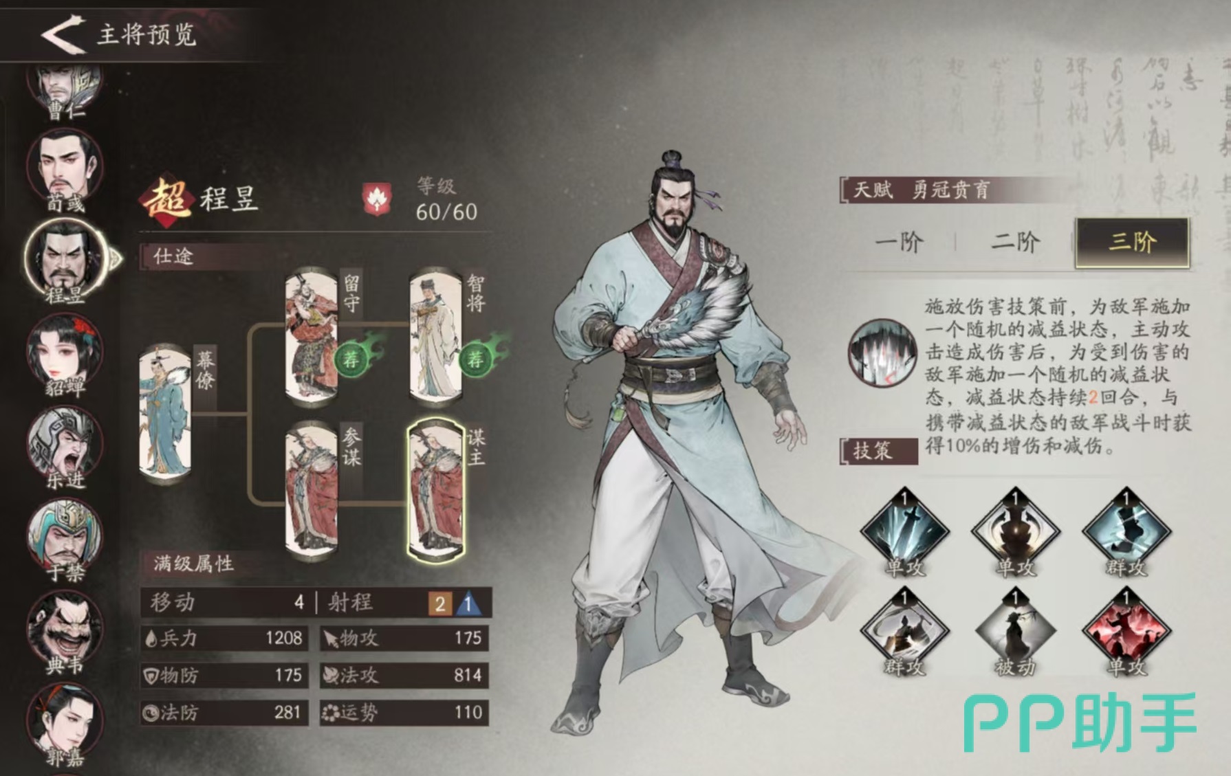 除了郭嘉之外,程昱也是与戏志才配合默契的主将人选。程昱的机制以附加减益状态为核心,每次普攻或释放技能均可叠加负面效果,并对已负伤单位造成额外伤害且降低所受治疗。在戏志才的加持下,程昱不仅输出更上一层楼,同时凭借减伤与回血提升了战场存活率。其他如简雍、荀攸等谋略型武将,虽非最优搭配,但也能有效利用戏志才的辅助特性,发挥出不错的协同效应。