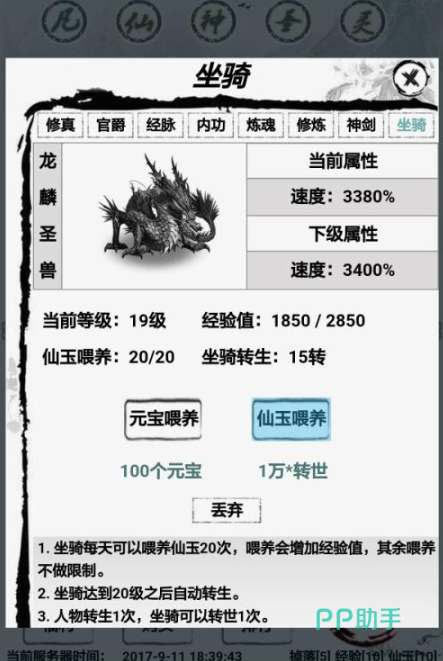 在这个修仙世界里,玩家既能体验自我修炼的乐趣,也能选择直接挑战强大的BOSS来突破自身的境界。在坐骑培养方面,玩家可利用元宝或仙域资源进行喂养,还有机会触发转生机制,而经脉玩法更是有着别样趣味。在其他板块中,玩家可进行修真修炼与官爵晋升,借助各种内功心法和神兵利器,助力自己快速达成飞升目标。