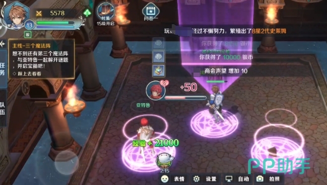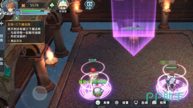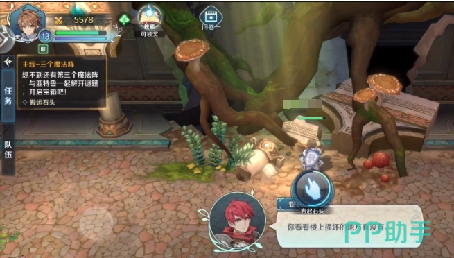 这时第三个魔法阵才会出现,意味着还需要一个人,建议大家可以找到安东尼来帮忙,如果没有这个角色在队伍当中其实大家也可以选择返回精灵村落,寻找奥露哈然后邀请她加入队伍,这样一来只要大家有三个角色就可以成功获取奖励,如果没有人的时候其实为了节省时间,大家也可以用石头道具代替的哦。