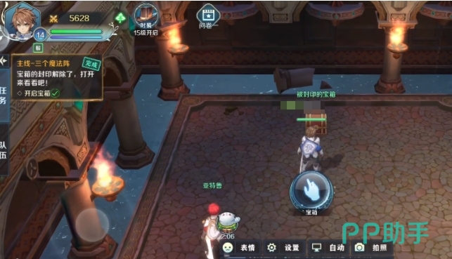 熟悉这种机制的玩家会知道,这些魔法阵是需要角色站立其中来解除保护宝箱的魔法,但是因为游戏中大家是可以带上宠物以及其他角色的,所以这样的方式也没有什么难度,大家在上面可以分别让两人站在两个魔法阵当中。