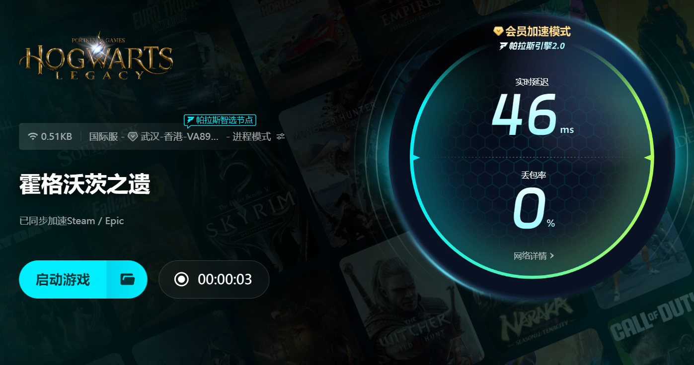 biubiu加速器的使用过程非常简单,玩家只需下载安装后,即可轻松开启加速。在加速器的界面上,玩家只需要搜索《霍格沃茨之遗》,将其添加到加速列表中,选择合适的加速路径,点击启动加速,工具便会为玩家搭建专用的加速通道。此时,网络的稳定性和游戏的流畅度都会得到显著提高。加速过程中,biubiu加速器还会实时监控网络数据,玩家可以查看延迟、丢包等信息,进一步优化游戏体验。