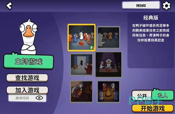 延续端游核心架构,手游共收录超30种差异化角色,技能机制彼此制衡且具备强联动性:通灵鹅可侦测幽灵存在数量,警长鹅拥有单次击杀权但误判将导致同归于尽,静音鸭可临时禁言指定玩家。不同角色组合将触发独特交互链路,确保千局千面。本地化优化覆盖组队响应、匹配效率、操作适配等关键节点,支持一键开黑与快速建房。角色外观系统支持任务解锁机制,涵盖帽子、服装等百余款个性化装扮,助力玩家构建专属形象。