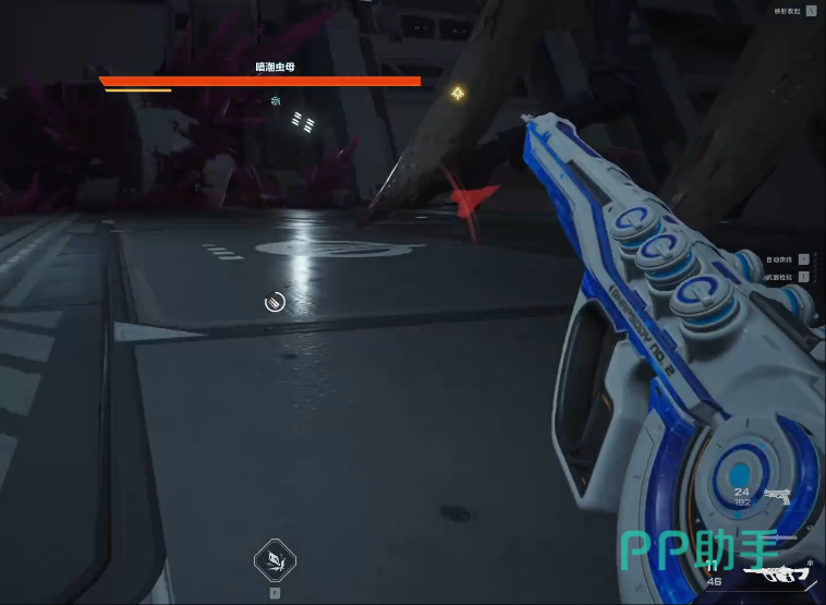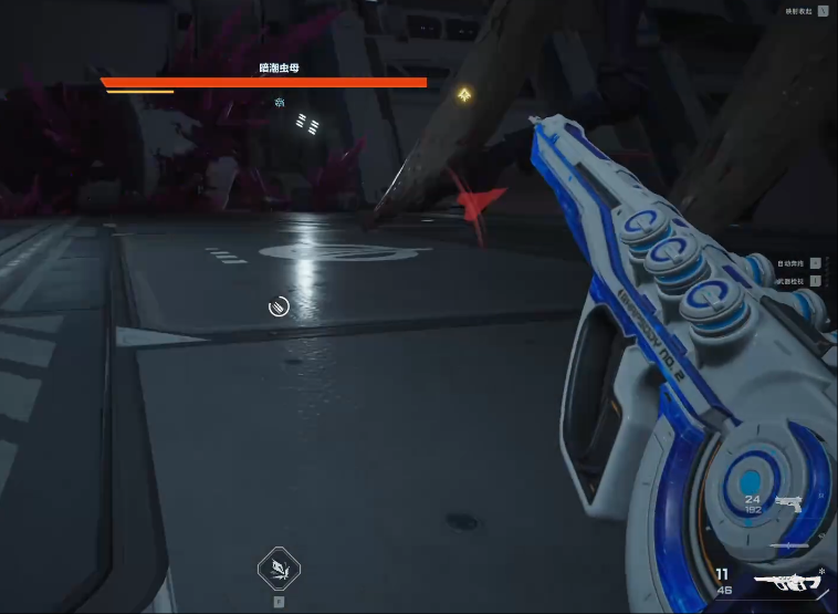 该Boss战设计强调操作友好性:初始阶段默认启用【自动开火】模式,大幅降低瞄准门槛;同时引导界面明确提示“低位掩体优先”,帮助新手建立空间站位意识。由于初始武器输出有限,玩家需特别注意弹药补给间隙的走位规避,避免被压制。