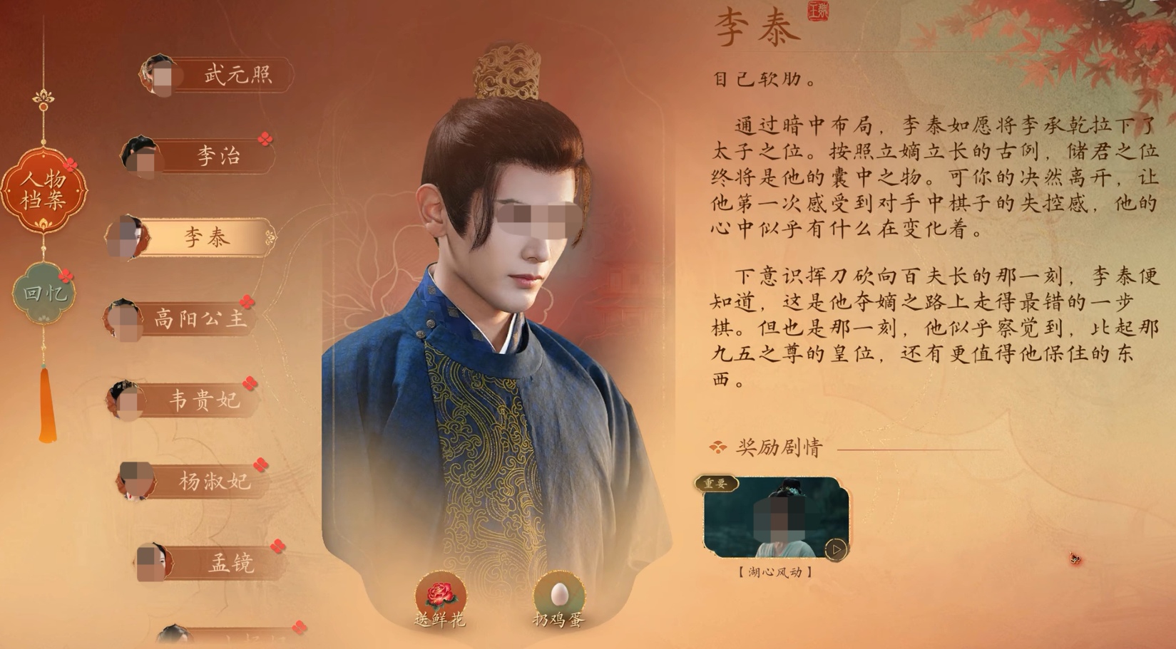 了解目标人物的性格特征是建立情感联系的前提。魏王李泰为人谋略深远,极具政治抱负,行事风格冷静且富有主见。他欣赏有头脑、有胆识的同伴,反感优柔寡断之人。因此,在与其交流过程中应展现出坚定立场与独立思考能力,避免使用模棱两可或退缩类选项。