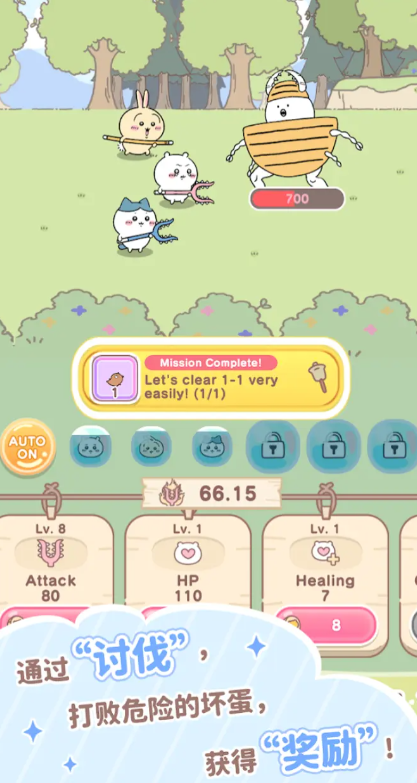 《口袋吉伊卡哇》采用了吉伊卡哇所有的原版人物形象,为玩家编制了一个休闲世界,在这款游戏当中,玩家不仅能够率领,各类不同类型的小可爱,进入到大世界之中挑战魔兽,也可以让这些小可爱进入到厨房当中,通过制作美食的方式,来获取更多的金币。