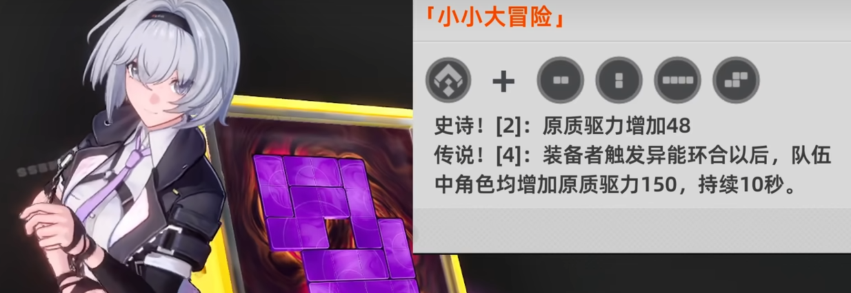 主角作为队伍基础反应触发者,定位为副C级辅助。其主要职责并非承担主输出,而是通过高频切光操作激活元素反应链,在空幕开启后衔接大招与技能释放,并完成生花收尾。当面对高光属性伤害敌人时,亦可临时切换为承伤位。推荐空幕为“小小大冒险”,提供反应增伤与基础攻击力加成,虽获取周期较长,但契合主角功能定位。