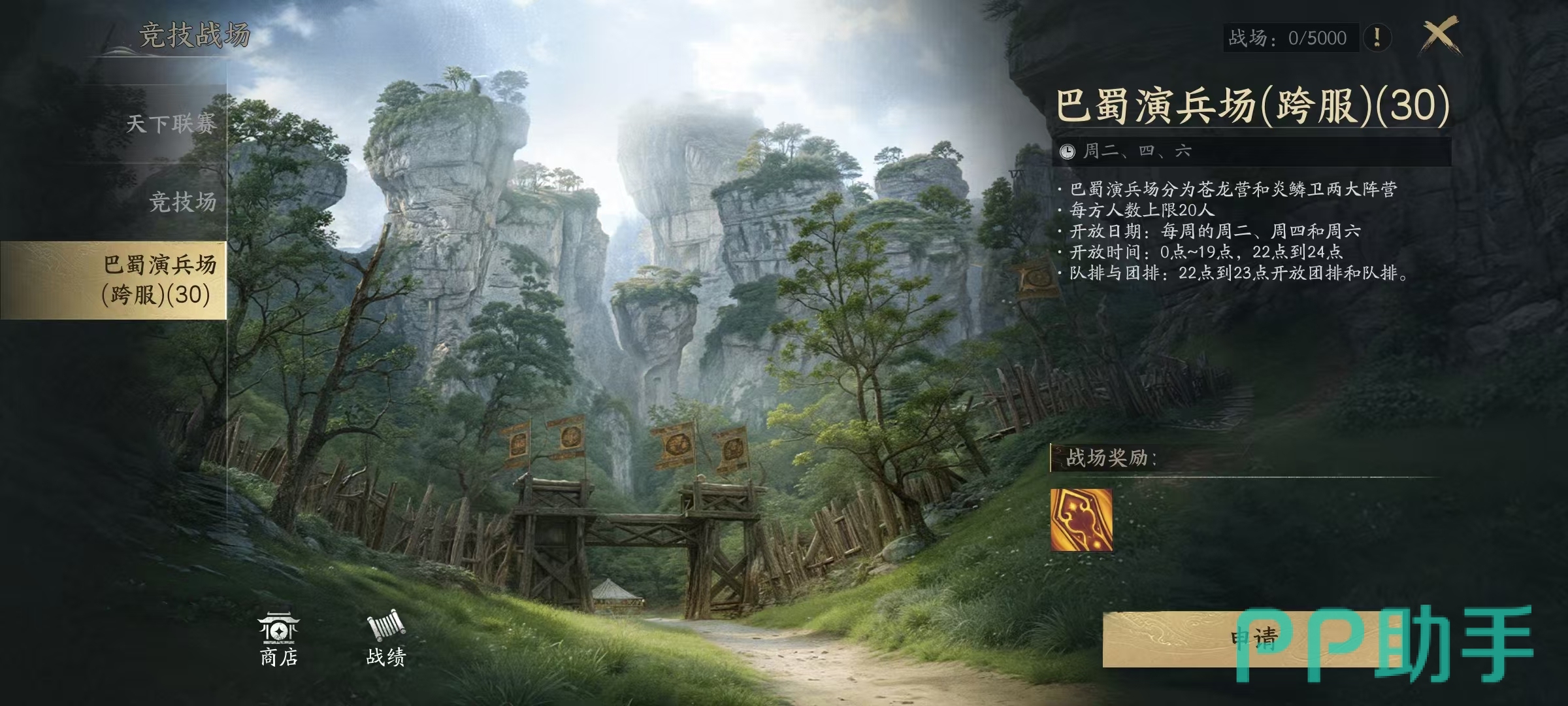 铁蹄战场(亦称“铁蹄大作战”)为每日限时开放的20人对20人跨服团队对抗模式,开放时段为每日12:00至23:00。战场地图固定为“巴蜀演兵场”,地形开阔、点位明确,利于多线推进与战术调度。参与门槛为角色等级不低于30级;满足条件后,可通过主城NPC“铁蹄大作战申请人”提交申请,或直接从游戏内【战场】功能入口一键进入。入场前需完成两项关键配置:一是选定属性模板,二是绑定珍兽类型——此二者共同构成玩家在本玩法中的核心战斗身份,直接影响技能释放、生存能力与团队定位。