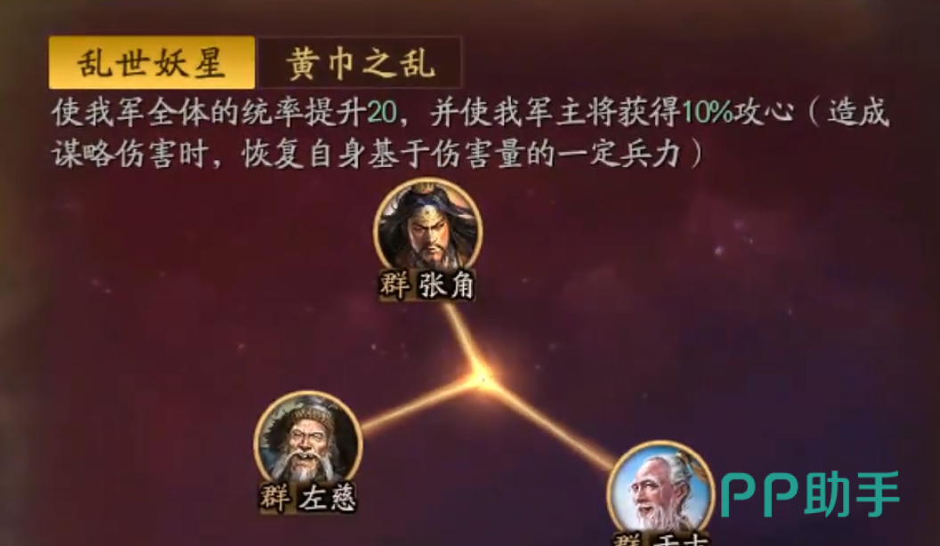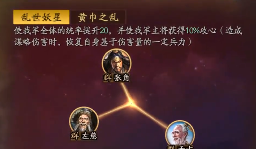 当前版本中,张角已形成三套成熟且经过实战验证的主流阵容配置。第一套为T0级“三仙盾”,以张角为主将,搭配于吉、左慈两位全智力副将,通过“水攻”连锁与高额治疗、减伤构建持久作战体系,保障“五雷轰顶”的稳定释放与震慑命中;第二套为T0级反突击阵容“武峰群盾”,由SP袁绍担任主将,张角与左慈为副将,专精对抗张辽、马超等高机动快攻队伍;第三套为T1级平民过渡阵容,张角为主将,张宝、张梁为副将,依托“沙暴”联动机制,成型成本低、培养门槛小,适合新手玩家前期快速组建主力队。