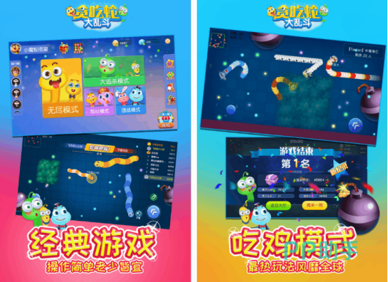 这款以可爱的贪吃蛇为主的休闲游戏中,能让你三分钟就能开一局,随时随地想玩就可以,根本就没有什么难度。在进入游戏以后,你可选择喜欢的皮肤,然后与里面的其他小蛇展开激烈的碰撞,也要利用灵活的走位,来保护好自己的头部,避免被其他的蛇撞击。支持组队打团模式,让你在玩的过程中,既能展现出自己的实力,也能不孤单。
