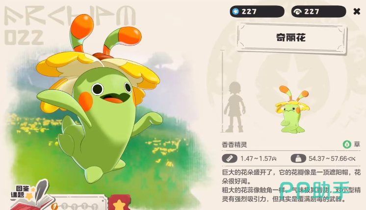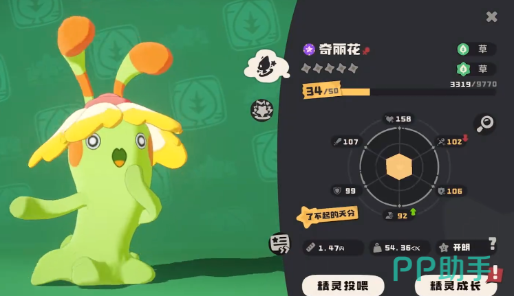 草系的精灵在游戏里可以克制土、水和石系,但要小心精灵会被飞行系和火系的精灵克制,奇丽花的生命值是比较优秀的,物理攻击,魔法攻击还有魔法防御数值也都比较高,精灵唯一的弱点就是速度相对来说会比较慢一,同时物理防御也并没有那么优秀,初级状态下精灵的数值会比较低,可以通过提升等级的方式让角色的各个基础属性也能得到提升。