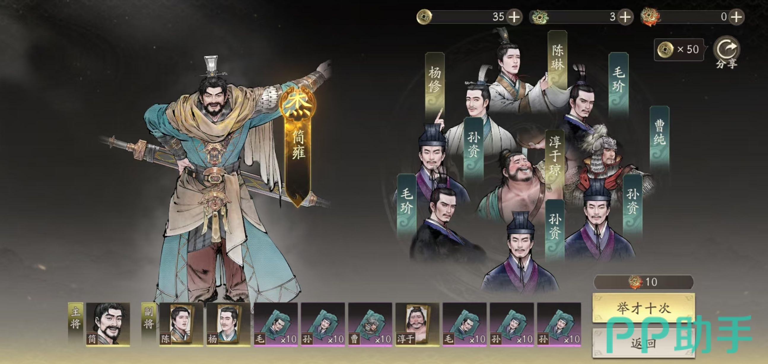 游戏开服初期,玩家主要可参与的是新手池以及自选武将概率提升池。随后还会陆续开放普通池、专属池和限定池等多种类型。其中,新手池为新人玩家提供了极具吸引力的福利:进行50连抽仅需消耗40个抽卡道具,相当于享受八折优惠。更重要的是,在这50次抽取之内必定会获得一位超品质武将。鉴于该池子的高性价比与保底机制,建议所有玩家务必将其抽满,再转向其他卡池。
