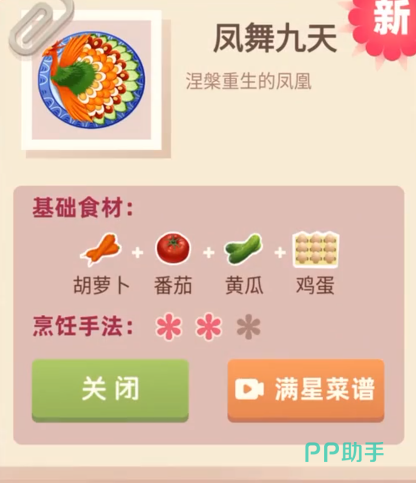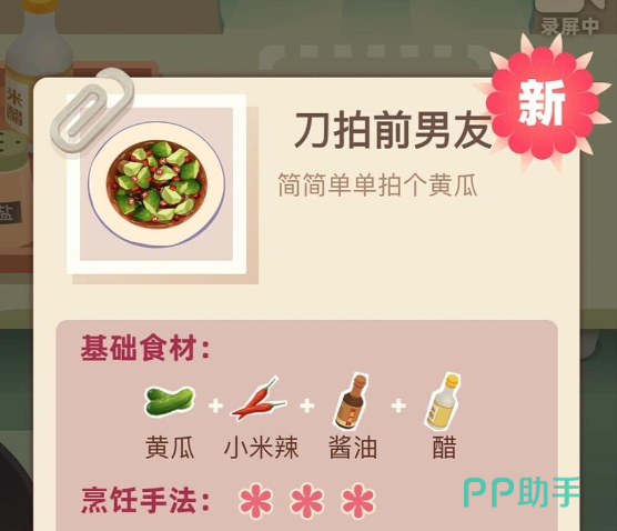 蔬菜类的菜谱推荐比较简单,首先推荐的是【番茄炒蛋】菜谱为鸡蛋,西红柿和少许盐。脆爽的黄瓜也是受到玩家们的喜爱【刀拍前男友】主食材是黄瓜和灵魂调料,用小米辣、酱油和醋以及少许盐调制。【凤舞九天】玩家们不要被名字吓到,食材和制作都比较便捷:胡萝卜、番茄、鸡蛋、黄瓜