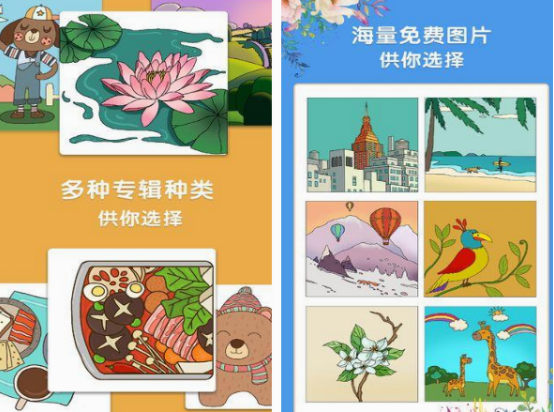 如果你很喜欢绘画的话,这款游戏采用简洁的风格进行设计,无论是小动物或者是各种图像,大家都能利用里面的各种颜色完成。其中涵盖12个章节,无论你是想要对里面的人物,搭配上各种各样的色彩,大家都可以自由的选择,也是完全免费能畅玩的。不管是孩子或者是哪个年龄段的玩家,要是喜欢画画的都可以下载。